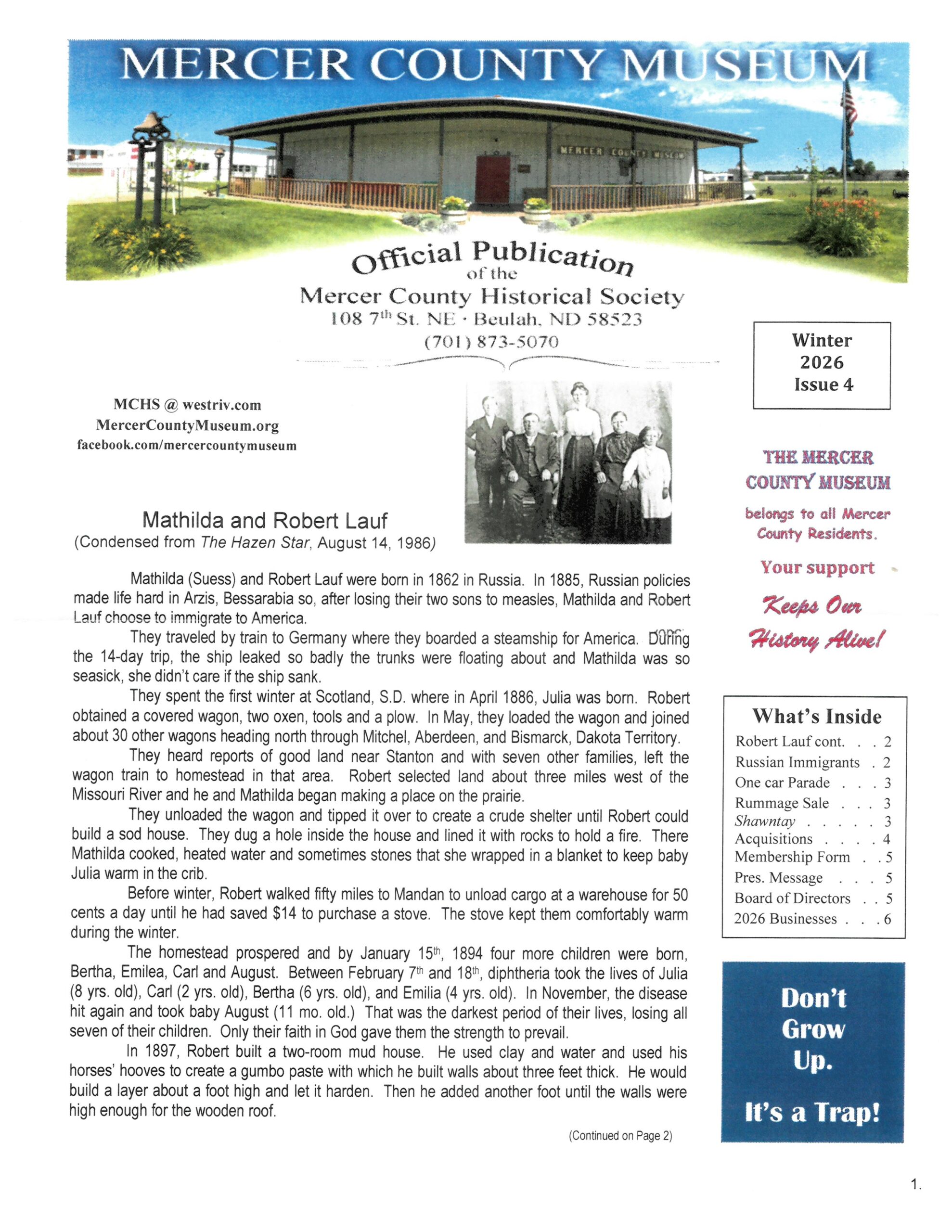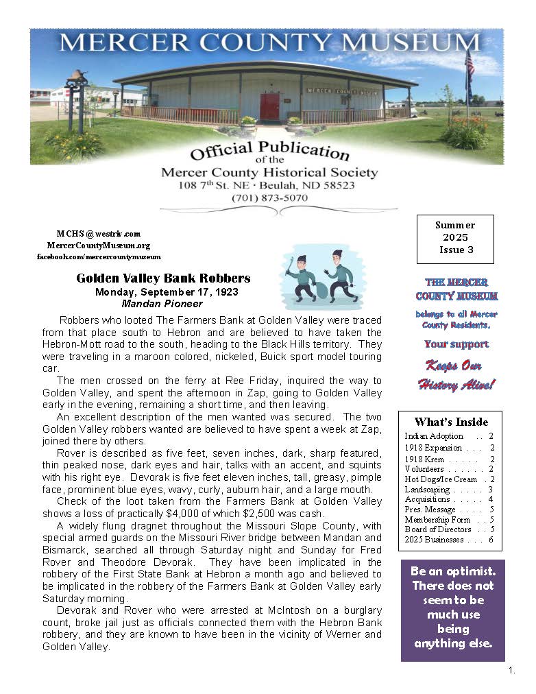 Mercer County History Mercer County 140 years old Want to read all of the latest newsletter? (click here)